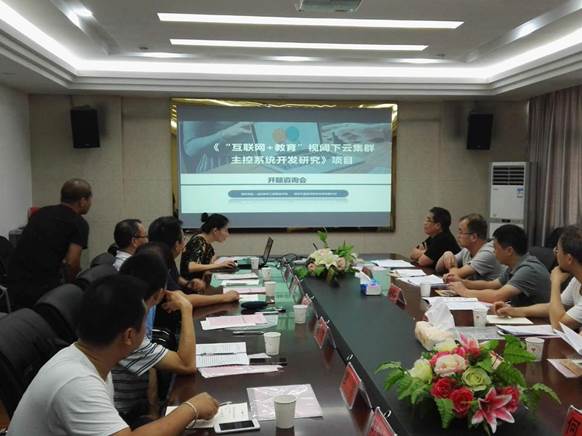 (通讯员:罗滨)9月2日上午9:30,由我校牵头承担的市级产学研项目《“互联网+教育”视阈下云集群主控系统开发研究》,在汉口校区2号楼8楼会议室召开了“开题报告咨询会”。专家组由来自华师大、武大、华科大、市教育局、数字教育出版社和我校的专家学者组成,项目组主要成员参加了咨询会。