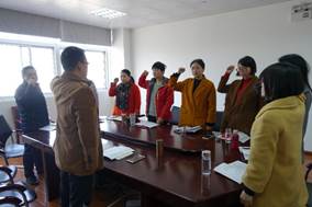 活动按照规定动作进行奏唱国歌,重温入党誓词后。由组织委员聂巍同志诵读党章,通报2018年1至3月的党费缴纳情况。按照“2018年3月支部主题党日活动的通知”要求,全体党员集中学习了“八个明确,十四个坚持”、“四个意识,四个自信”、党员义务和党的基层组织的基本任务,2018年两会政府工作报告解读等系列材料。